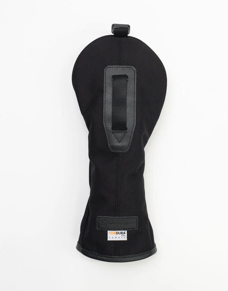 master-piece( マスターピース)master-piece GOLFシリーズのヘッドカバー for FW。本体素材は CORDURA® brand fabric の生産、品質基準を満たした認定工場において、210d の 66 ナイロン糸を 2 本撚りしたものを、2 本引き揃え、タテ・ヨコに使用し織り上げた、耐久堅牢度に 優れたオリジナルファブリック、MASTERTEX-07 になります。生地の表面には撥水加工、裏面には特殊透湿防水フィルム L-Vent® をラミネート加工し、トリコットナイロンを貼り合わせた3 レイヤー 構造による耐水圧 20,000mm レベルの防水機能を備えております。またパーツにより、オリジナルファブリックである MASTERTEX-04、05、06 を組み合わせています。 付属素材もレザーは防水鞣しを施したレザーを使用、底面の素材は、通常ナイロン の約 5 倍の摩耗・引き裂き強度・耐久性を持つ INVISTA 社の 1680D コーデュラバリステック ® ナイ ロンを使用し、裏面に PVC 加工を 施すことで更なる強度と防水性を向上させています。master-piece のフラッグシップシリーズ potential を GOLF で使えるギアとしてアップデートしました。