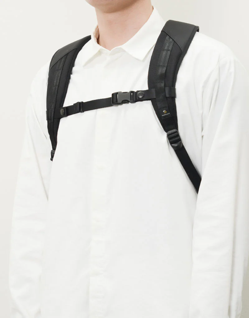 master-piece の m-strap やテープループを装備したバックパックに対応するチェストベルト。 ショルダーベルトが肩から外れにくく、片側の肩への食い込みやバックパックの揺れを軽減します。