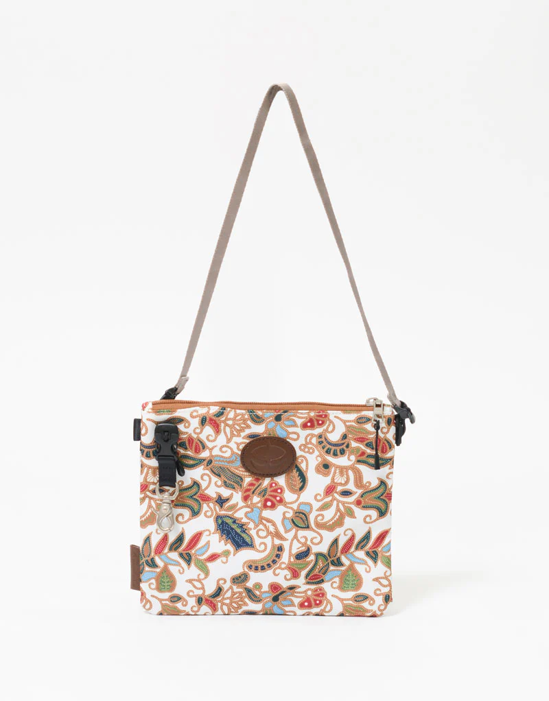 master-piece(マスターピース)のrajabrooke × master-pieceのサコッシュ。本体生地は、タテヨコ共に 600d のポリエステル糸をオックス織りした生地に、和のテイストや東南アジアの文化を取り入れ、大胆な色使いやパターンが特徴的な rajabrooke オリジナ ルのグラフィックをインクジェット昇華転写プリントしています。さらに生地の表面に撥水コート加工を施し耐水性にも考慮しています。付属レザーは防水鞣しを施したレザーと、革の 風合いを残しながら表面に粘着性の高いバインダーでリフレクトシートを貼り付けて再帰反射機能を持たせ夜間の安全性にも考慮したものを使用しています。 様々なカルチャーを独自の視点で解釈し展開する rajabrooke が持つ世界観をバッグというアイテムに落とし込んだコラボレーションシリーズです。